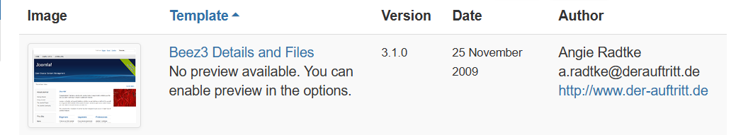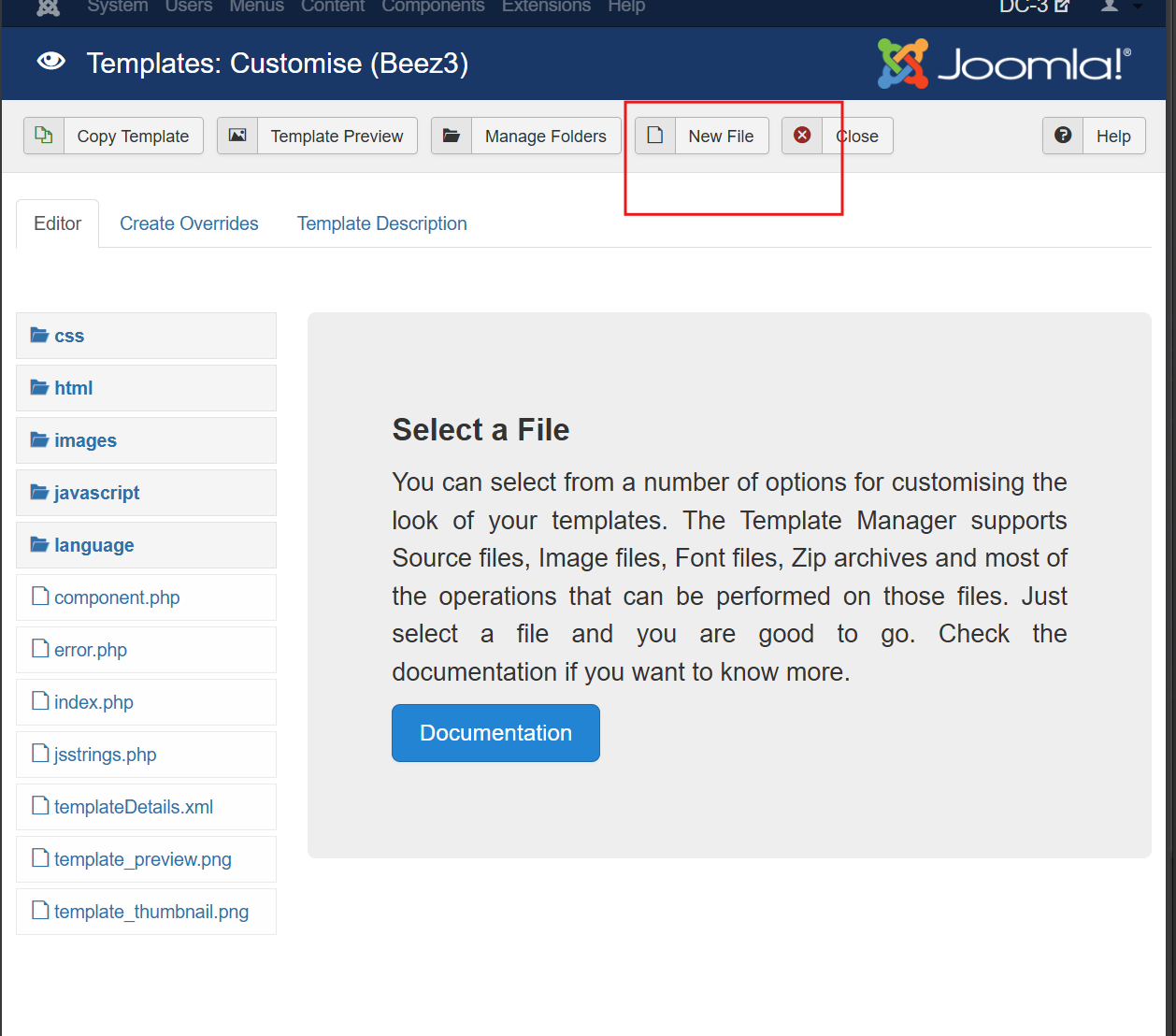 进入第一个,这个Beezes3 detail and files,它是joomla的模板编辑入口,可以查看,编辑模板,上传文件