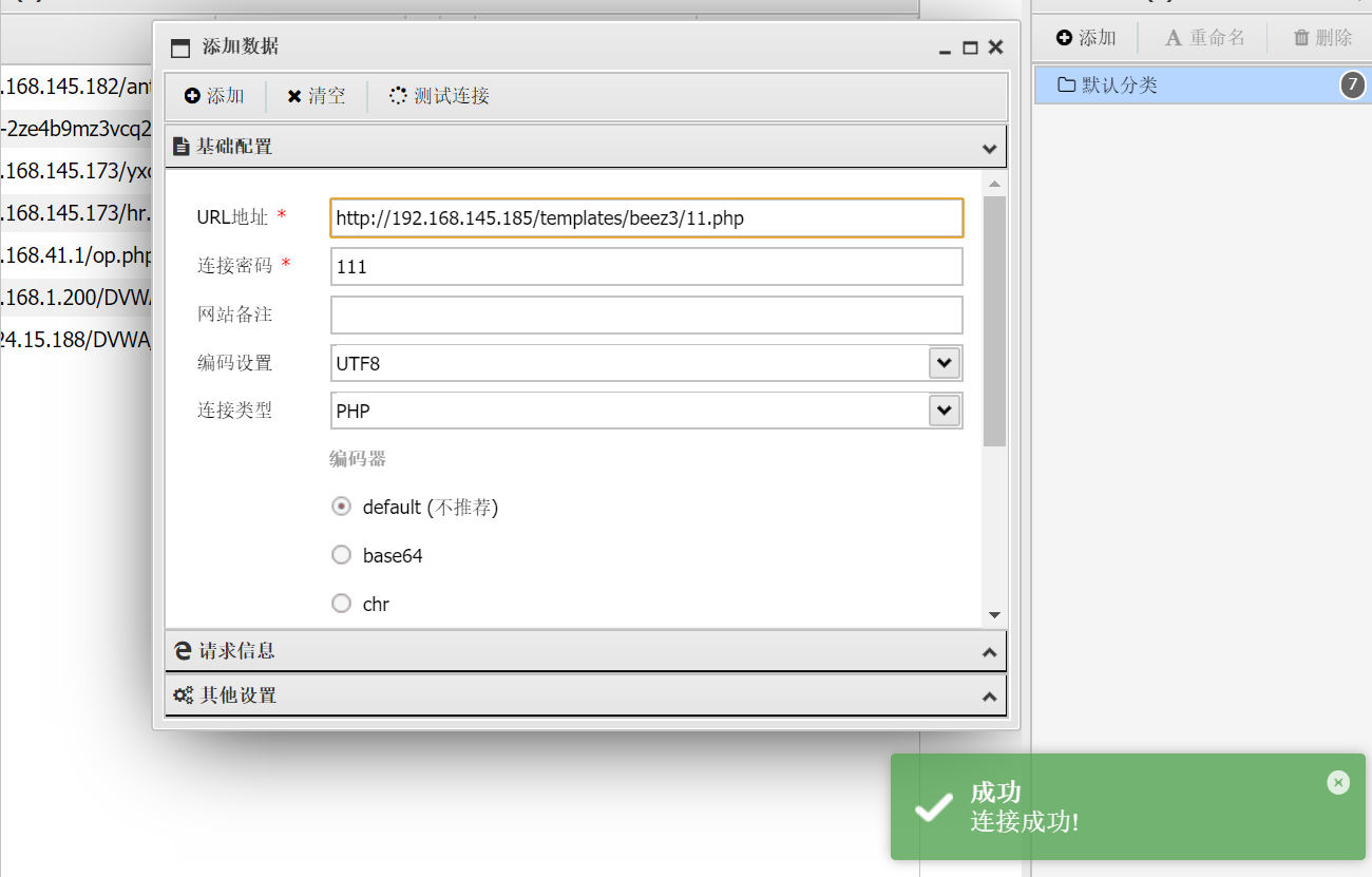 蚁剑连接,joomla的模块会单独放在一个templates文件夹里,所以我们根据这个路径连接蚁剑