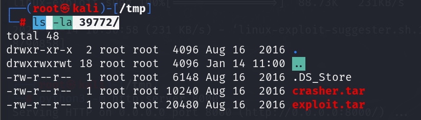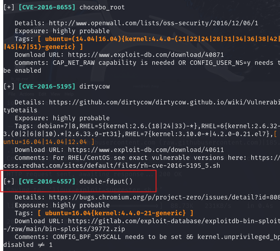 再开一个攻击端口,导到tmp目录下,用wget下载linux-exploit-suggester