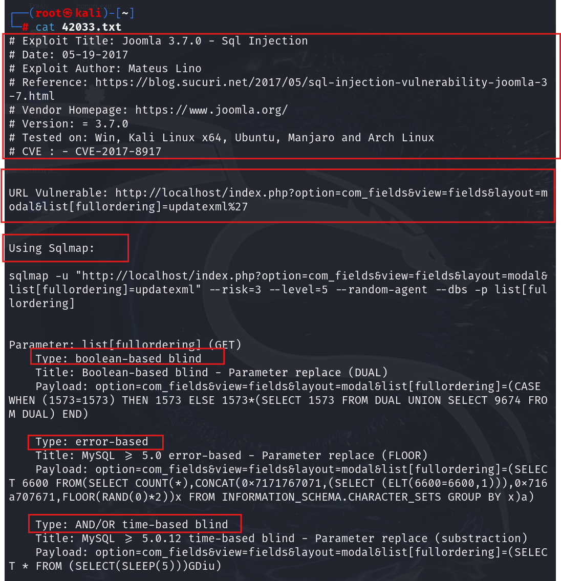 我们来分析一下这个文档,最上面的几个#后标注了这个sql漏洞的基本信息,然后给了一个url示例,接着是sqlmap的攻击示例